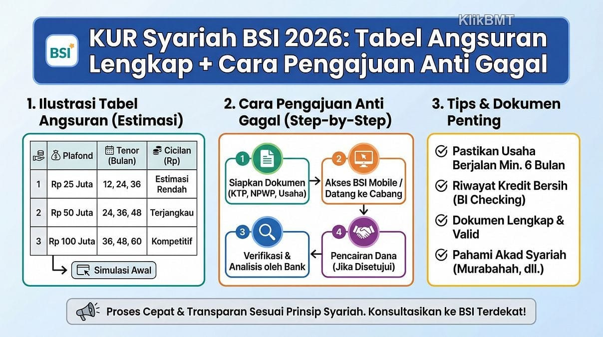 Jangan ajukan KUR Syariah BSI sebelum baca ini! Tabel angsuran 2026 & tips anti gagal sudah kami rangkum. Temukan rahasianya sekarang!